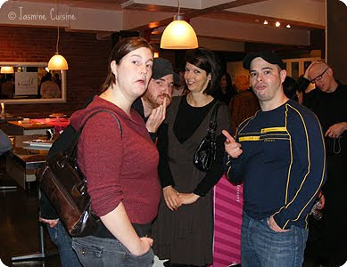 La soirée avait lieu à La Guilde Culinaire sur St-Laurent. Avoir su que cet atelier-boutique vendait autant de gadget et d'accessoires de cuisine, j'aurai été y faire un tour bien avant. Aie-je mentionné qu'ils ont tous les livres de recettes Marabout, une sélection de moule en silicone très chouette et surtout, un assortiment gigantesque de produits Cacao Barry? Je vais devoir y retourner pour m'équiper!