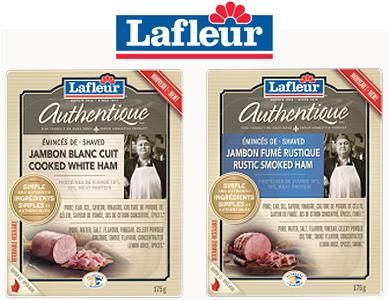 Pour mes palmiers, j'ai utilisé le jambon blanc des charcuteries Lafleur Authentique. J'ai eu la chance de goûter à cette saveur et aussi à celle du jambon fumé rustique, et je les ai trouvé très bonnes! Les tranches sont minces et belles, et la liste des ingrédients est courte, simple et facile à comprendre! Pas d'ingrédients louches ou superflus, faibles en sodium, sans gluten... parle-moi de ça! Je n'achète pas souvent de charcuteries car je suis toujours sceptique quant à leur qualité, mais pour concernant ce produit, rien à redire, c'est de très bonne qualité. J'aurais bien voulu vous montrer une photo des charcuteries, mais je suis tombée dedans comme Obélix dans la potion magique, j'ai mangé des croque-monsieur pendant 3 jours d'affilée et il n'en restait plus...
